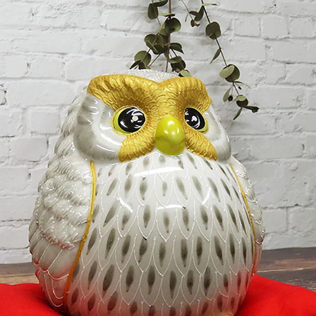 飛翔ふくろう 白盛黒 3 5号 フクロウ 置物 玄関 風水 小物 九谷焼 13時までの注文で当日出荷 休業日除く